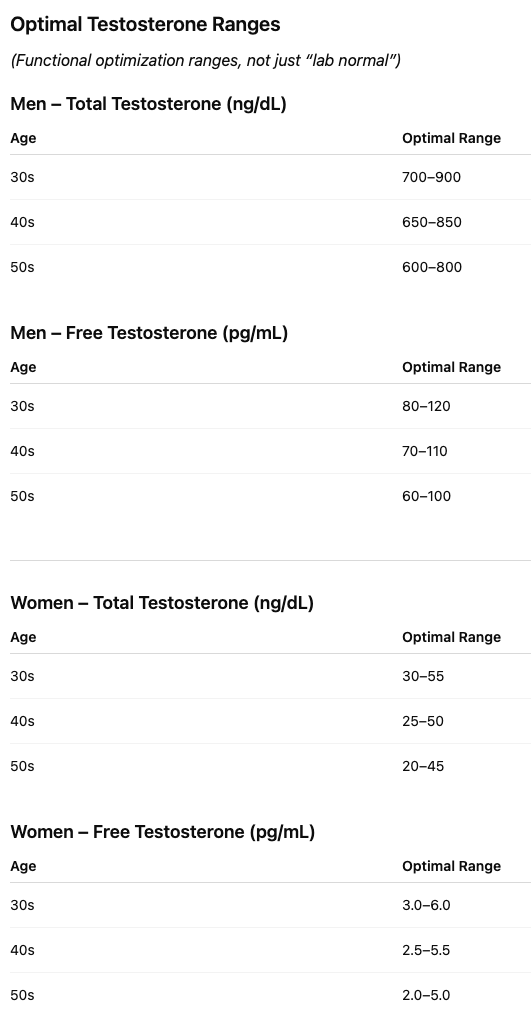 This applies to women as well. Women produce testosterone in smaller amounts, but it still plays a meaningful role in vitality and drive.